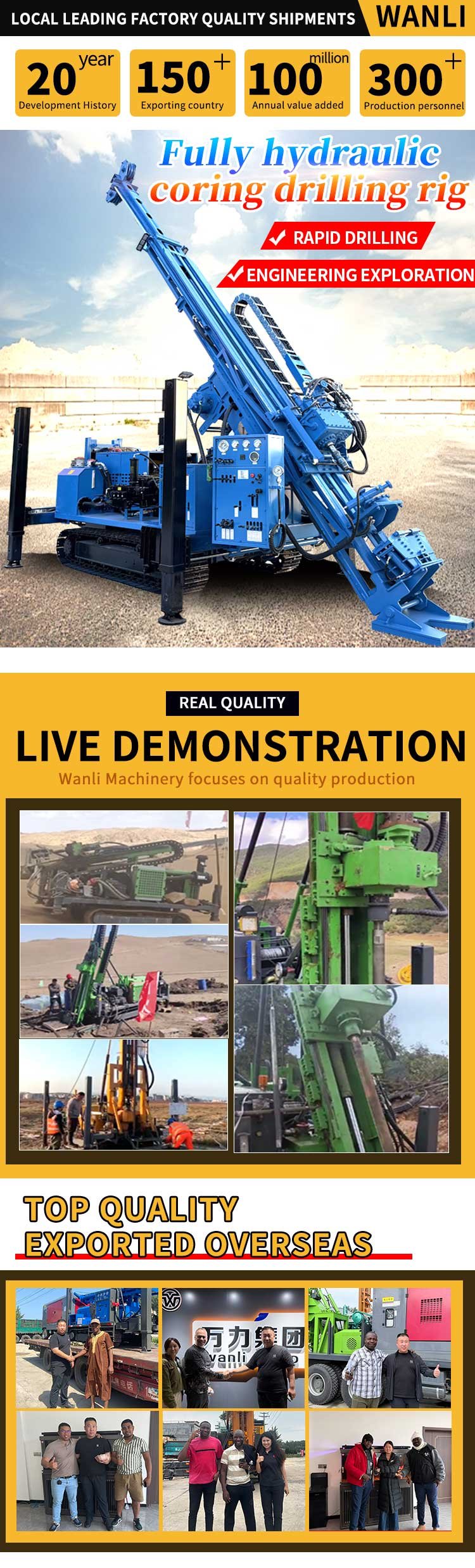 Full hydraulic drive with high torque and stable speed, high coring precision and excellent core recovery rate;