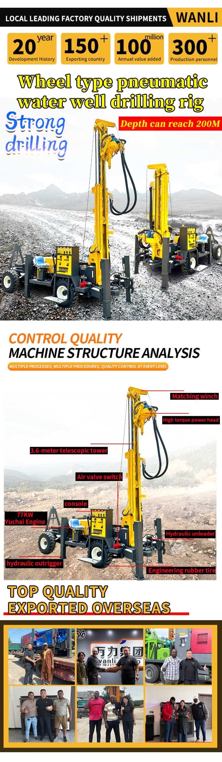 Traction wheel well drilling rig is a wheeled chassis well drilling rig requiring external traction, with strong maneuverability, and is used for well drilling.